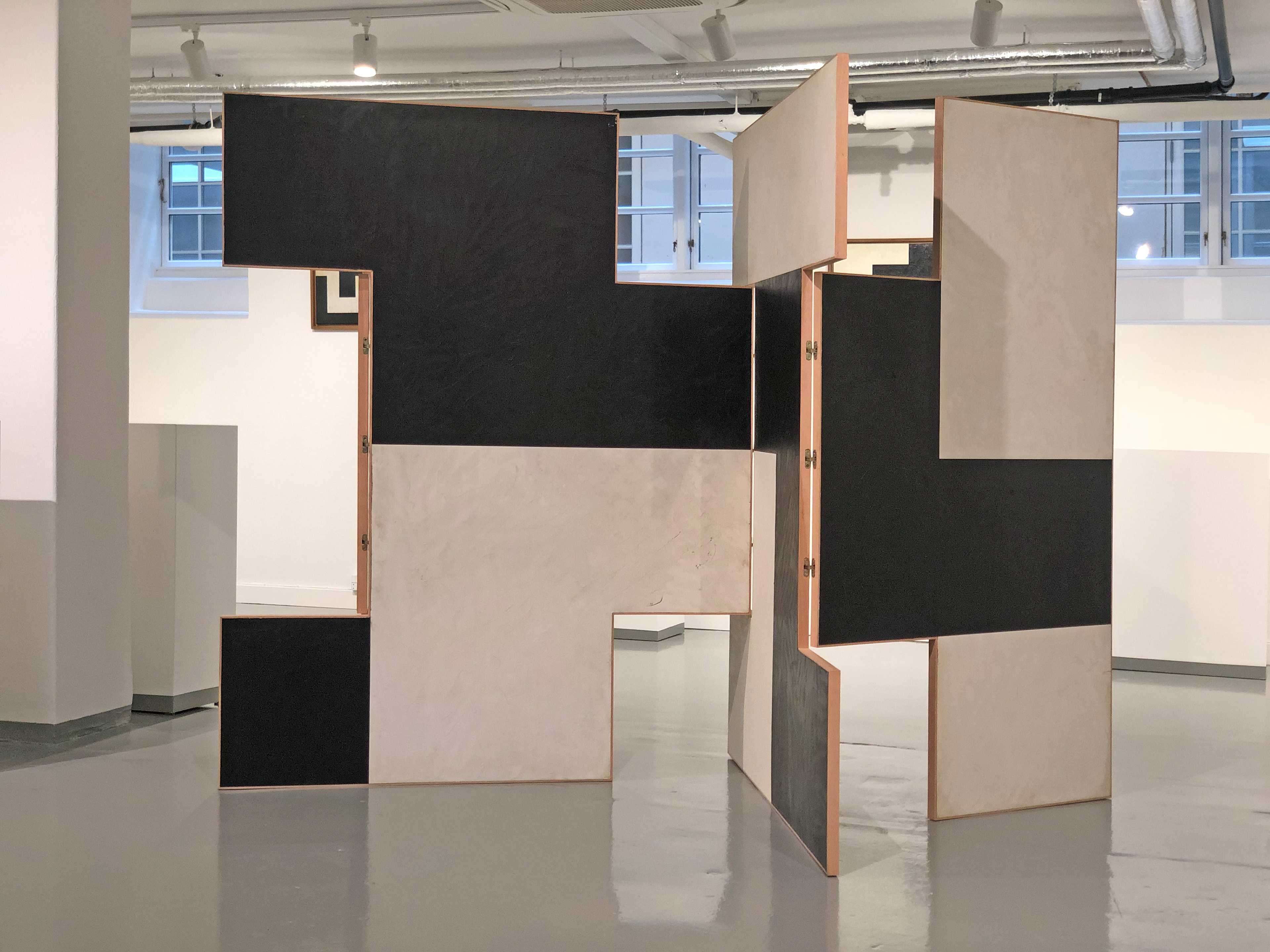 Dusa Jesih, Go with the flow, Hommage a Eileen Gray, folding screen, acrylic on wooden panels, 180x360cm, 2017